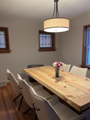 This light fixture has received positive feedback for its stylish design and ability to enhance various spaces, particularly dining areas and kitchens. Guests appreciate its easy installation and the soft, diffused lighting it provides. However, some concerns were raised about the fit of the glass piece within the shade, which can affect the overall appearance. Despite this, many guests find it to be a great value and a beautiful addition to their homes.