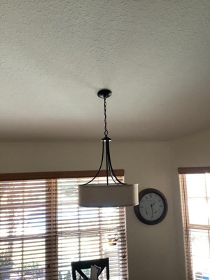 Franklin Iron Works Oil Rubbed Bronze Pendant Chandelier 19 1/2" Wide Farmhouse Rustic Oatmeal Linen Drum Shade Fixture for Dining Room Kitchen Island
