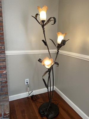 Franklin Iron Works Rustic Farmhouse Sculptural Floor Lamp 68 1/4" Tall Bronze Gold 3-Light Amber Glass Intertwined Lily Flower Shade for Living Room