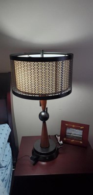 Franklin Iron Works Rustic Farmhouse Table Lamp with USB Outlet Workstation Base 28.75" Tall Antique Bronze Wood Double Drum Shade Living Room