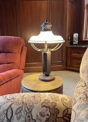 This lamp is a great addition to our living room—and fits in well with our 100+ year old home. The glass shade is very nice; my only caveat is that the lamp is rather ‘loose’ when assembled, despite multiple washers—and the part holding the glass is impossible to keep in a tight, stable position. That said, it’s a very cool lamp and a good value.