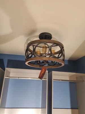 I purchased two of these ceiling lights for a kitchen and laundry room make over. My theme is rustic with the two rooms being small and these lights are perfect! The lights were packaged well and arrived in great condition. There are three amber light bulbs provided. I switched the kitchen lamp to brighter bulbs for more light and left the amber bulbs in the laundry room. I love the uniqueness of these lights and very happy with my purchase. Lamps Plus shipped quickly and kept me informed of when they would be delivered.