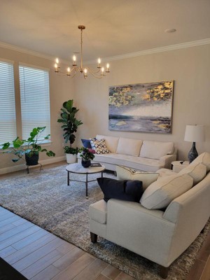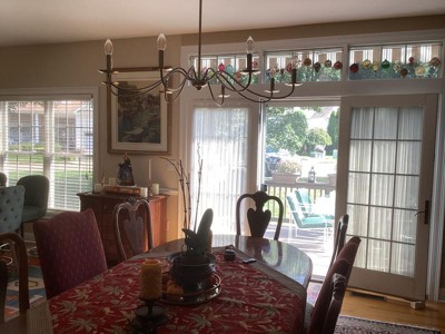 I love my chandelier! I have a dimmer which gives me the perfect ambiance for dinner parties or giving the room a cozy atmosphere.