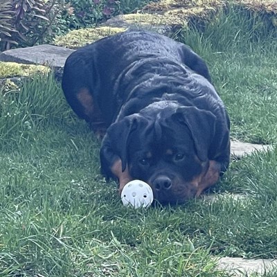 Our dog is always stealing our practice balls, so far they’ve lived up to their name vs Rottweiler puppy haha