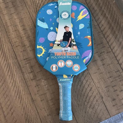 [This review was collected as part of a promotion.] My family and I recently took up Pickleball and found that we absolutely love it. The set that we originally had had wood paddles and we needed some. That were a little bit more sturdy. I found this one which is a youth size for my nine year-old. It is teal and has an astronaut space theme the handle is very comfortable and has a nice grip. I thought this was a great price and we will definitely get good use out of it. I received an incentive to write this review.