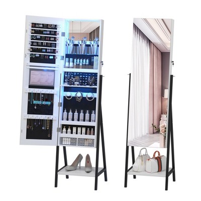 Wooden 360°swivel jewelry cabinet, no matter where you are, you can meet your needs for mirrors. more convenient to take and put.built-in makeup mirror is convenient for you to select jewelry or apply make-up in front of the cabinet.full-length mirror not only illuminates the whole body but also expands the view of the room.