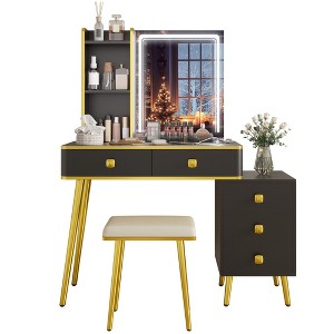 Product Name: Fredees 3-in-1 Makeup Vanity: Charging Station, Stool, Sliding Mirror, 3 Lights, Storage,Black