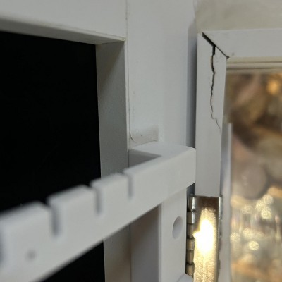 • Featuring a built-in lighted mirror, this jewelry cabinet lets you apply makeup and jewelry effortlessly without the need to move to a separate vanity table. The soft interior lighting provides the perfect illumination to help you select the right accessories, all while avoiding harsh overhead lights that could disturb others in your home.