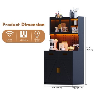 Product Name: Fredees 71" Tall Arched Cabinet, Kitchen Pantry & China Cabinet, Arched Bookshelf with Open & Adjustable Shelves, Induction 3-Color Lights