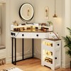 - Equipped with a premium vanity mirror that allows 360° free rotation, this corner vanity desk enables flexible framing at 90°, 180° and other angles, reflecting your face without any blind spots.