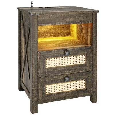 - Infused with farmhouse charm and classic craftsmanship, this bedside table set of 2 effortlessly enhances any decor style. Whether placed next to your bed or sofa, its warm, vintage-inspired design brings a cozy yet refined feeling to your space
