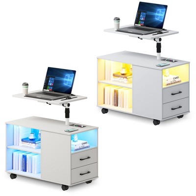 - The LVSOMT LED bedside table, when assembled, measures 17.7"L x 15.7"W x 25.6"H. It is equipped with 2 large drawers and 1 open shelf, providing ample storage for your bedside essentials such as books, cups, CDs, and more.