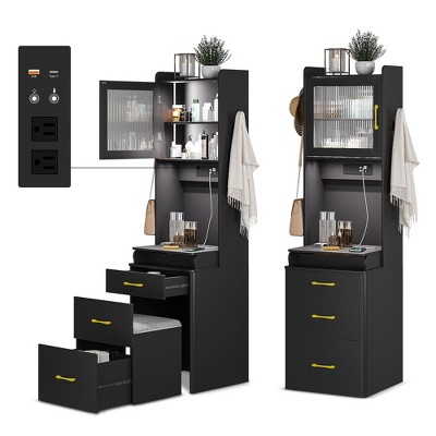 Fredees Small Vanity Desk: Mirror, Lights, Combination Lock Drawers, Charging Station, Human Sensor