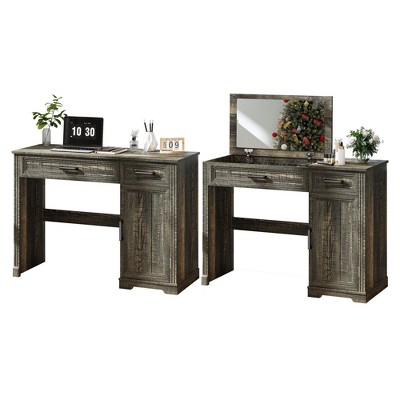 The vintage vanity comes with a lighted flip-top mirror,opening the folded mirror, it is a dressing table to meet your daily make-up, closing the mirror, it can be turned into a writing desk for you to write and work
