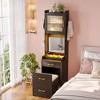- vanity, nightstand and bench are combined into a compact corner vanity-nightstand all in one. The vanity table also comes with a flip-up mirror