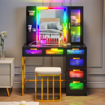 - The dressing table comes with 2 AC outlets and 1 USB port and 1 TYPE-C port. When you need to blow dry your hair or do your hair