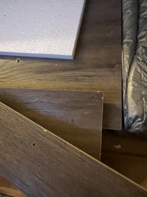 Sadly when I opened the box the Styrofoam packing was had glue that stuck to the board. When I lifted it out of the box it ripped the particle board right off. Luckily I could haul the thing back to our local Target store and returned it easily.