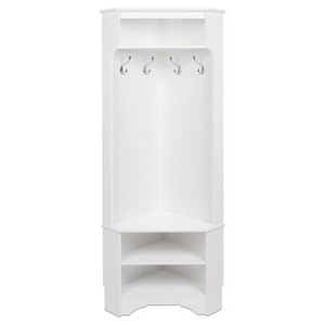 Introducing the versatile Prepac Corner Rack, a combination of a corner shelf stand and corner bookcase, designed to enhance the functionality of your space. With a fresh, sleek white finish, this standing shelf is perfect to use as a corner plant shelf, shoe shelves or even a bathroom corner organizer. Its compact dimensions of 30.5”W x 72” H x 19” make it the perfect small corner shelf to utilize those tricky corner spaces.