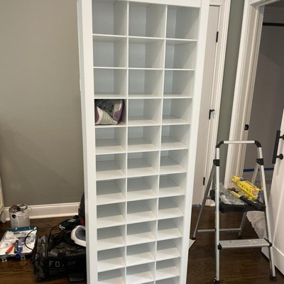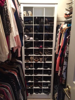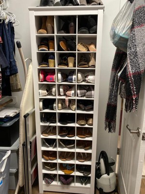 - SHOE ORGANIZER: The Prepac Shoe organizer cabinet with 36 cube shelves is a perfect shoe storage solution for decluttering your entryway or mudroom.