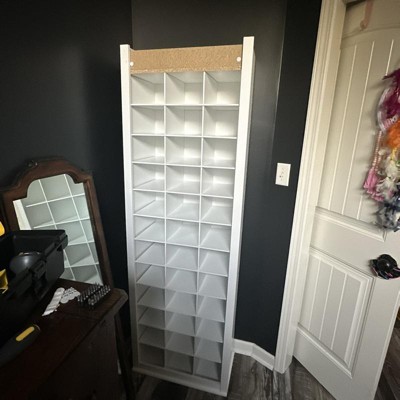 - SHOE CUBBY: Measuring 13"D x 23;5"W x 72;5"H, this shoe organizer cabinet maximizes storage with its 36 shoe cubbies; Each shoe cubby measures at 11;75"D x 7"W x 5;25"H, creating an efficient entryway shoe storage system