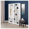Set the tone for an organized space with the Prepac Wood Shoe Organizer. As an entryway shoe storage cabinet that lit up in a crisp white laminate finish 'zapatera', this shoe shelf towers 72.5"H x 23.5"W x 13"D, making for a tidy and aesthetic shoe rack for entryway use.