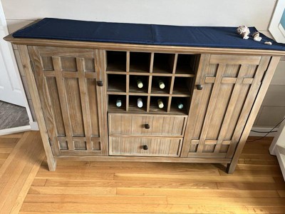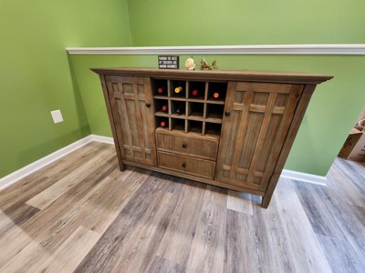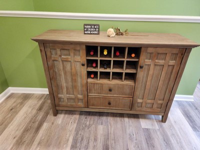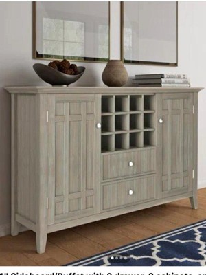 The Freemont Sideboard Buffet & Wine Rack has plenty of storage and space for all your dining and entertaining needs. It has a large centrally located wine storage area with two drawers. The two large side storage cabinets open to two adjustable shelves.