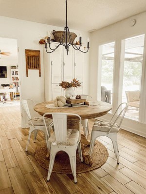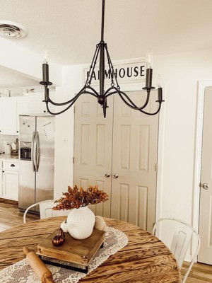 [This review was collected as part of a promotion.] This chandler is gorgeous. It’s simple farm house design adds a touch of elegance to any room. It is easy to clean and can use normal or Edison Bulbs with it. The light was to install and works on a dinner switch too.