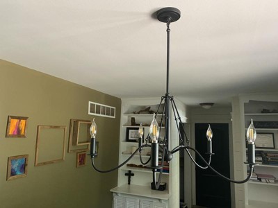 [This review was collected as part of a promotion.] I used this light above the table in our breakfast nook in our kitchen. It’s absolutely gorgeous and far exceeds my expectations. The color and style go perfectly with my antique/farmhouse style in the breakfast area and throughout our home. It was relatively simple to put together and install. It also comes with several rods of various lengths in order to adjust how far down it hangs from the ceiling. That’s a plus as it will work in many different areas or different ceiling heights. When guests come over, we get compliments on it. The detailing that branches to each light is really pretty and not something I’ve seen on this style light before. Absolutely love it!