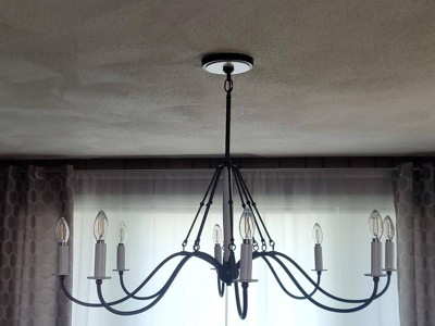 [This review was collected as part of a promotion.] This Freesia 8 Light Chandelier Anvil Iron with White Accents is so beautiful. The chandelier makes any room complete and really makes the room light up. I really liked how easy this was to install and easy to read directions helped a lot. I am completely impressed with how well this chandelier is made and the design is amazing.