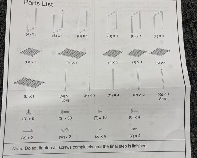 Q: I am missing some the of hardware for this kit. Is there anyway I can find the screw sizes so that I can replace the few parts that are missing. I have some but not all. Looking for sizes for part S, T and U