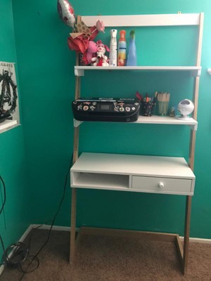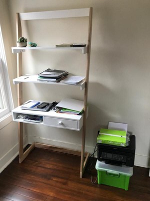 Freestanding Ladder Desk with Drawer Solid American Maple Frame Natural/White - Flora Home: Modern Style, Fixed Shelves, Hardwood Construction