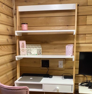 I live in a small apartment that's in need of a lot of desk space for school and other projects. I absolutely love this desk because it doesn't take up much floor space, has a lot of storage, and is lightweight and easy to use. This is one of my favorite ladder desk designs at this price point because the design is very clean and doesn't have extra support bars like many others. Two screws at the top are needed to anchor it to the wall and then it's quite stable. I wouldn't skip this part because without the screws the desk is pretty wobbly. It's also made of wood which really beats Ikea and most other similar desks at this price point. Highly reccomend. My partner just bought a matching one.