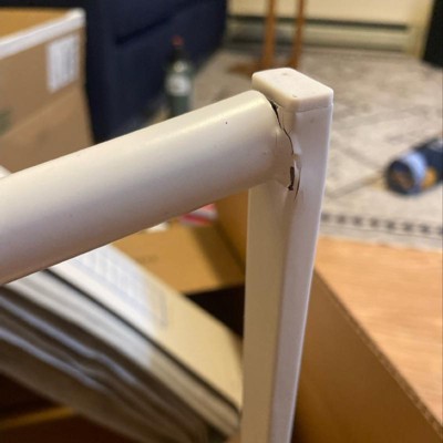 Arrived broken (missing the brown piece). Went to exchange at the store & the only one in stock was also broken.(metal stand loose).