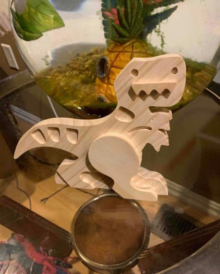 - Freestanding wood dinosaur is a fun, customizable decoration