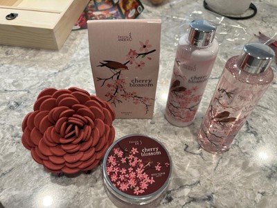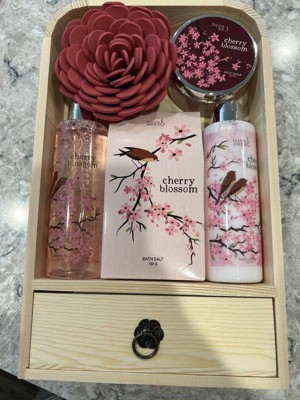 This will be a Christmas gift to my daughter but I do want to say cherry blossom has always been a favorite scent if mine. The scent of the spray in this set last long especially when you use the body wash and lotion that comes with it. This set give you a spa treatment without leaving the house! Great gift to give or keep for yourself.