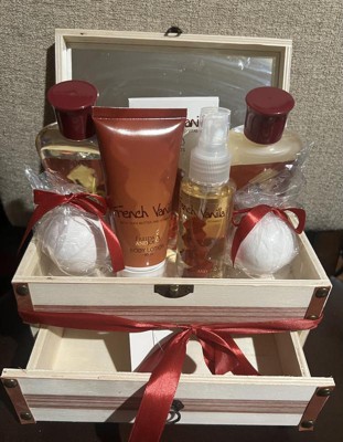 Freida & Joe French Vanilla Fragrance Spa & Skin Care Collection in Wooden Jewelry Box Bath & Body Gift Set