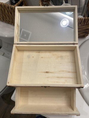 The mirrored top broke upon opening because they did not bother to add a chiain or cord to keep the top from falling all the way back and breaking!