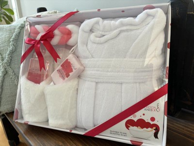 This Freida and Joe Robe & Slipper Spa Set is the perfect gift set for those who enjoy a little self care. It includes everything needed for a relaxing day in. The robe is super soft and the slippers are comfortable. The shower gel has a nice lather and the sponge gets my skin clean, while the lotion feels nice on my skin.