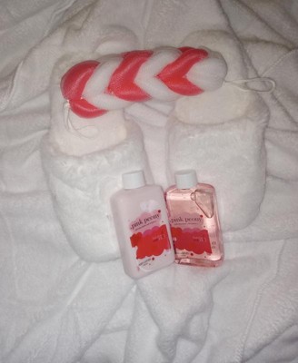 What a perfect gift for the holiday season. The pink peony scented lotion and body wash are mild, but still have the pleasant peony scent. What I absolutely loved about this gift set was the robe and slippers that are included. The plush material is soft and thick making for a cozy and comfortable robe. The slippers are surprisingly sturdy, but will likely only last a year or so. There is also a loofah included, which is just a bonus at this point. Everything is packaged neatly in a cardboard box with a festive red ribbon. This would be the perfect gift for any woman or teen who just wants to be pampered this holiday season. I highly recommend it.