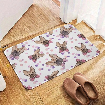 French Bull Dog Bathroom Rugs Winter Bath Mat Absorbent Non Slip Bathroom Mat Christmas Soft Floor Carpet 16x20 Inches - 1 of 1