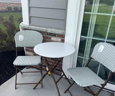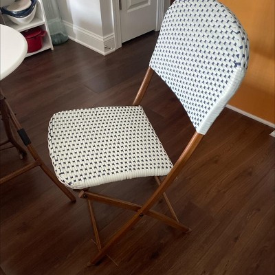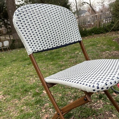 Bring the charm of French seating to your outdoors with this French Cafe Outdoor Patio Dining Folding Chair from Threshold™. Supported by a metal frame, this weather-resistant chair is perfect for creating a chic patio seating arrangement. Designed in a beige hue, this armless chair features a woven seat and back for a timeless look. Plus, the foldable design allows for easy transportation and storage.