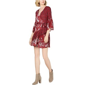French Connection Womens Belted Faux Wrap Floral Ruffled Dress