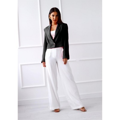 French Connection Womens Harry Cropped Suiting One Button Blazer Jacket
