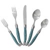 Set sail for the sparkling blue waters of the Aegean Sea with French Home’s 20-piece flatware set in a tranquil teal shade of blue. This flatware gives any table an understated elegance, reminiscent of dining in a luxury resort facing out onto the Aegean Sea. French Home's Laguiole flatware is comfortable to hold and perfectly balanced. Laguiole is a style of design that originated in France and is renowned for having a three rivet curved handle with a bee emblem on its bolster. The bee is a symbol of Napoleon and the French monarchy. Made with 1.8mm stainless steel the utensils are solid, feel substantial in your hand, and are dishwasher safe. Laguiole is a town in France where this style of cutlery originated in the 1820's.