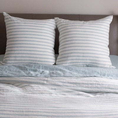 We decided to add this Pebble Heather Pinstripe lumbar pillow to our queen size bed set. We did all the same color but having another layer of a long pillow is very cozy. I really like the size of this lumbar pillow, and the case came straight out of the dryer and right onto the bed and looks great. The linen feels soft and cool, it really breathes well and doesn't get hot at night. It's decorative but also comfortable to sleep with and use as a body pillow. Very soft and comfy!