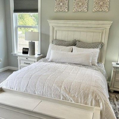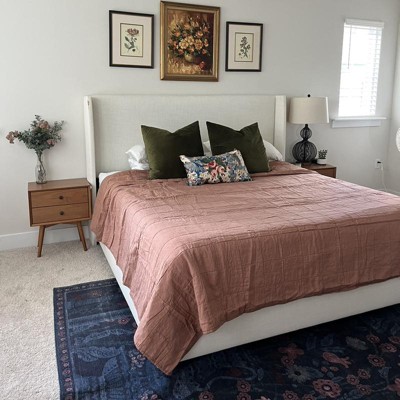This quilted set was the perfect fit my cabin. I feel in love with the rich Baltic blue color & it has a lovely linen texture without feeling too fussy. It’s the perfect weight for chilly nights without being bulky. I was happy to see the shams have a center opening for inserting the pillow instead of at the end so you don’t have to battle the pillows shifting or peaking out of the ends.
