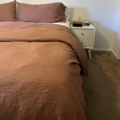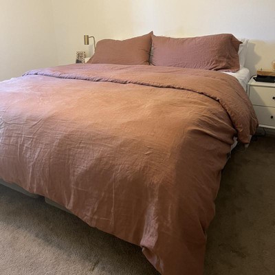 [Purchased the quilt and sheet set in Clay] Disappointed that the color is much more orange in real life, when the photos show a slightly more pink color. Threw my color scheme off a bit. Now that it’s summer I’m regretting my purchase because the quilt doesn’t breathe at all and I’m waking up sweaty which is not normal for me. It’s just way too much money to be spending on something that I don’t love. Otherwise I think it’s good quality, well made. It’s not very soft but I kind of expected that as it’s a linen material but I do miss having softer sheets.