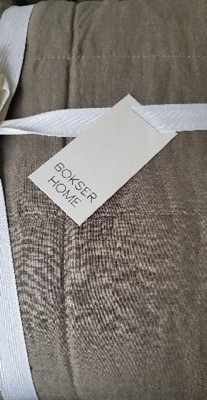 The Bokser French linen quilt in grey pinstripe is generously cut of quality fabric and finished with fine details. Comfortable medium weight and the color I chose can be easily coordinated with the other items in the Bokser line. I gave the five-star review for each of the items I've purchased and would highly recommend Bokser to anyone who looks for quality, luxury and affordability; classic bedding that launders well and stands the test of time.