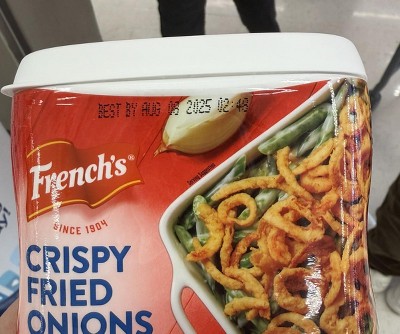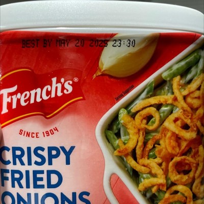 Yesterday [11/27/25], used French's crispy fried onions in our Thanksgiving green bean casserole. When I opened the container, then 'chemical' smell was Very evident. Thought it was weird, but topped the casserole with the onions and baked. Sadly, this was a BIG Mistake…as we couldn't eat any of the dish due to the strange and unappealing smell, texture and taste. We will not be using this product again. P.S. If I could give a Zero Star Rating, I would.