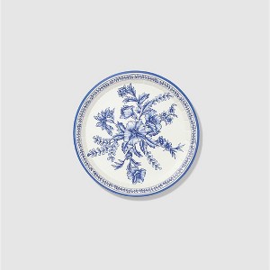 Classic and elegant, our floral toile small plates bring a touch of the French countryside to any occasion. Featuring a deep blue toile pattern, the plates are the ideal size for small bites and desserts. Includes 10 plates.